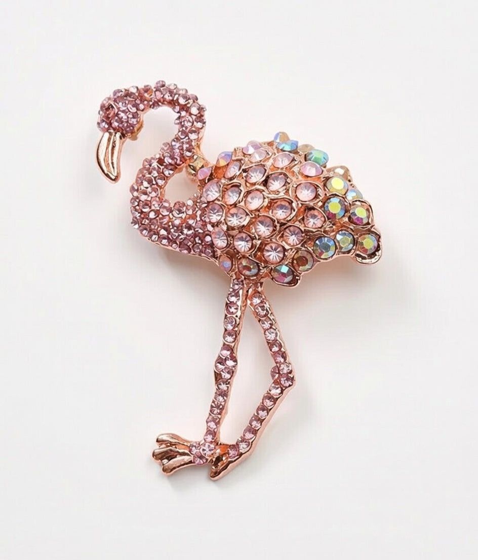 RHINESTONE FLAMINGO BROOCH : Size- 1.77 X 2.05 INCHES : Color- PK
